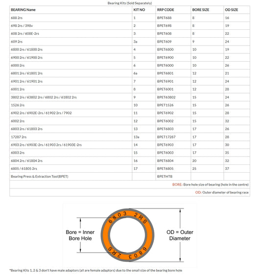 PVP 9 Kit - 3802 2rs/63802 2rs/6802 2rs/61802 2rs