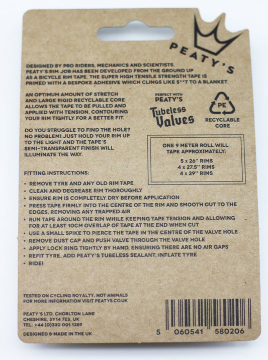 Fondo de llanta adhesivo Tubeless PEATY'S RIMJOB (9 m)