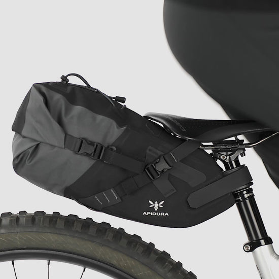 El APIDURA BACKCOUNTRY SADDLE PACK 6 L es una solución ultrarresistente y ligera para ciclistas todoterreno, ideal para bicicletas con espacio trasero limitado. Diseñada para transportar equipo compresible, ofrece un espacioso compartimento bajo el sillín y se fija fácilmente mediante un sistema de fijación de tres puntos compatible con tijas telescópicas. Eladaptador opcional para tija telescópica proporciona un soporte adicional a la vez que preserva el espacio entre la bolsa y la rueda.