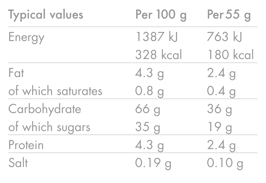 Consumir 1 barrita 30-60 min antes del ejercicio o cada 45-60 min durante la actividad, dependiendo de la intensidad. También puede utilizarse como tentempié después del entrenamiento.