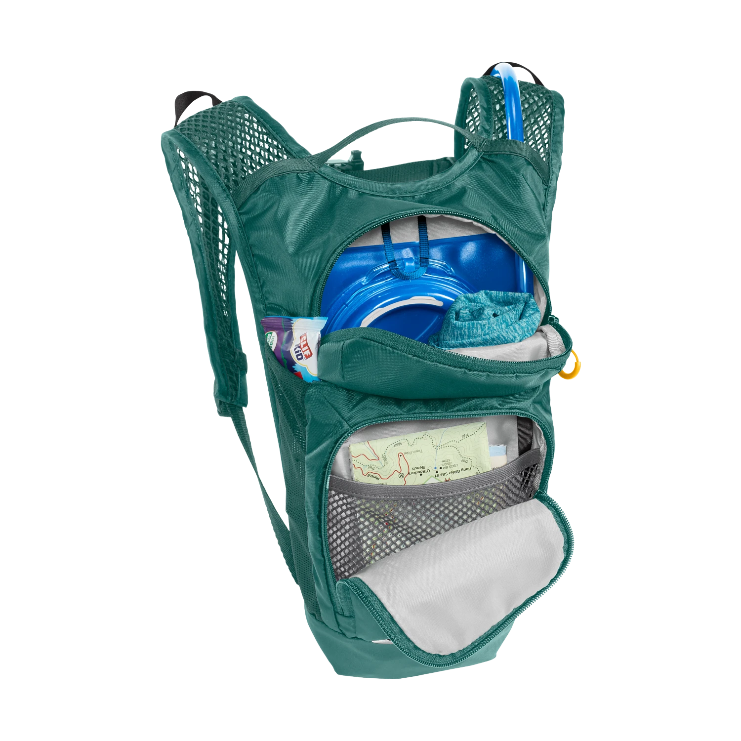 La bolsa dispone de un espacio de almacenamiento optimizado con un bolsillo extensible, un bolsillo para herramientas y un bolsillo seguro con cremallera, para que puedas organizar todos tus objetos esenciales y pequeños tesoros. El arnés y la malla transpirable proporcionan una ventilación eficaz, mientras que la correa ajustable del pecho ofrece un ajuste personalizado.