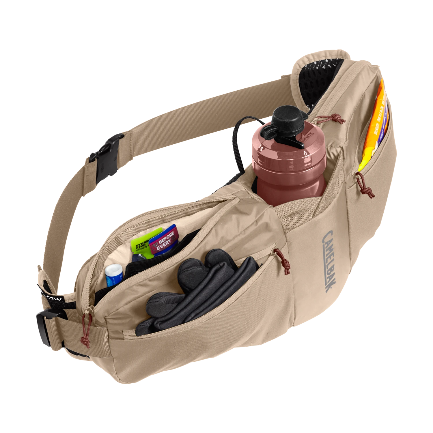Con su bolsa de hidratación Podium Flow 4, CAMELBAK ofrece un acceso rápido y sencillo a tu botella de agua. Además del depósito de bebida, el cinturón dispone de un espacio de almacenamiento y un bolsillo para tus herramientas.