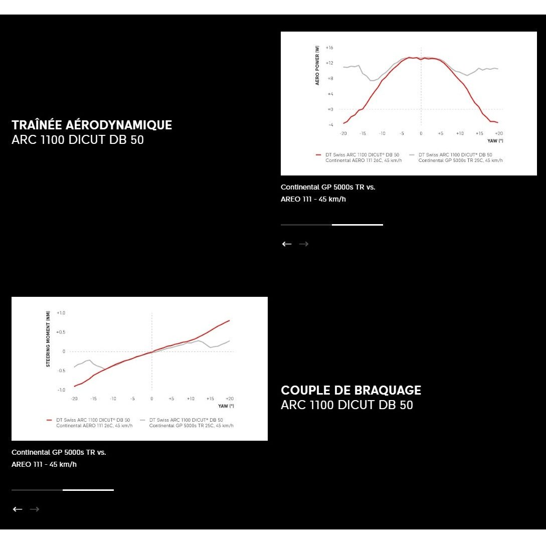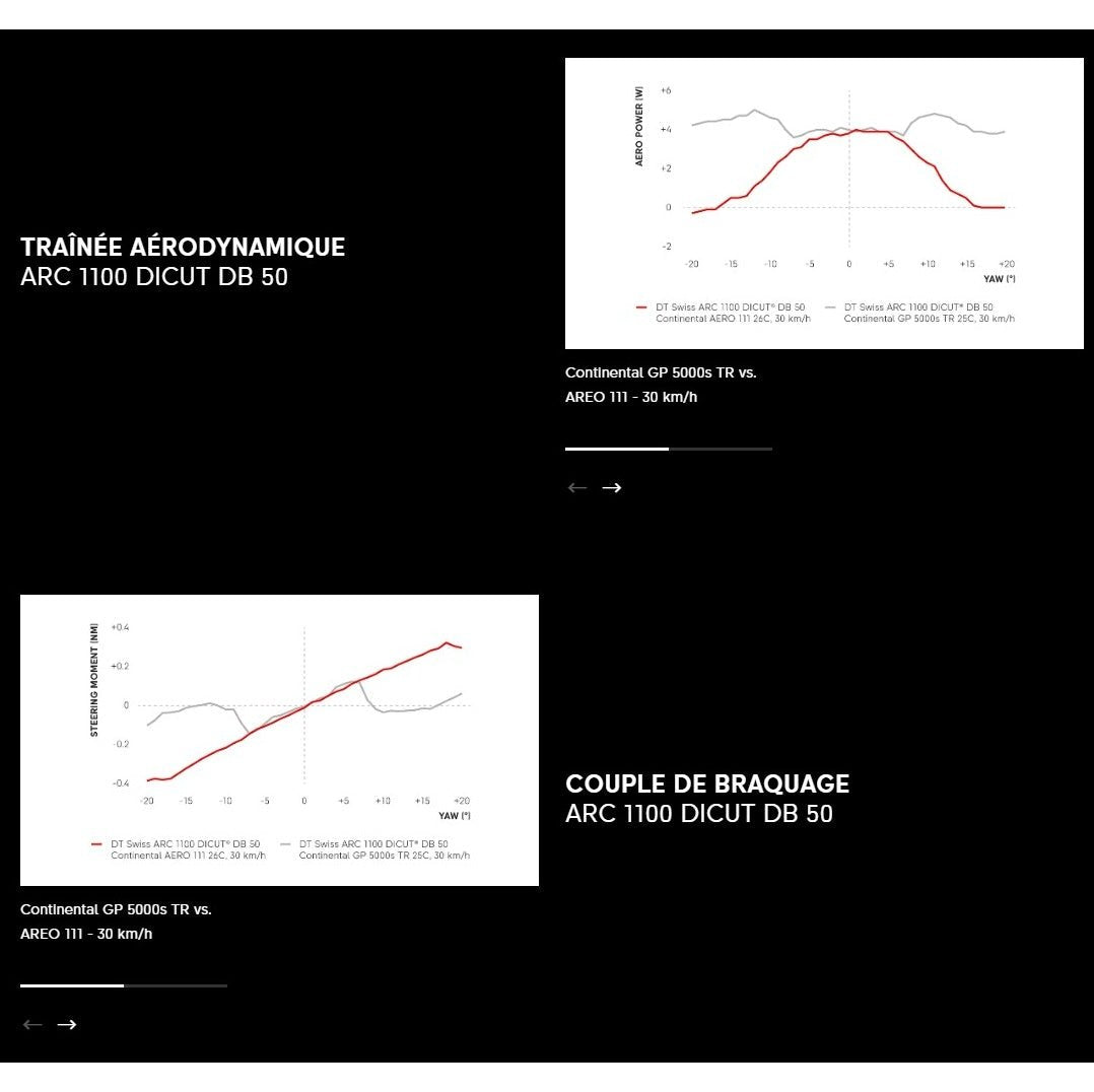 Disponibles en Tubeless Ready (Center Lock)la ARC 1100 Dicut también está disponible en versión WTS (sistema rueda-neumático)optimizada para la aerodinámica. Está equipada con un neumático delantero AERO 111 de 26 mm y un neumático trasero Continental GP 5000 STR de 28 mm.
