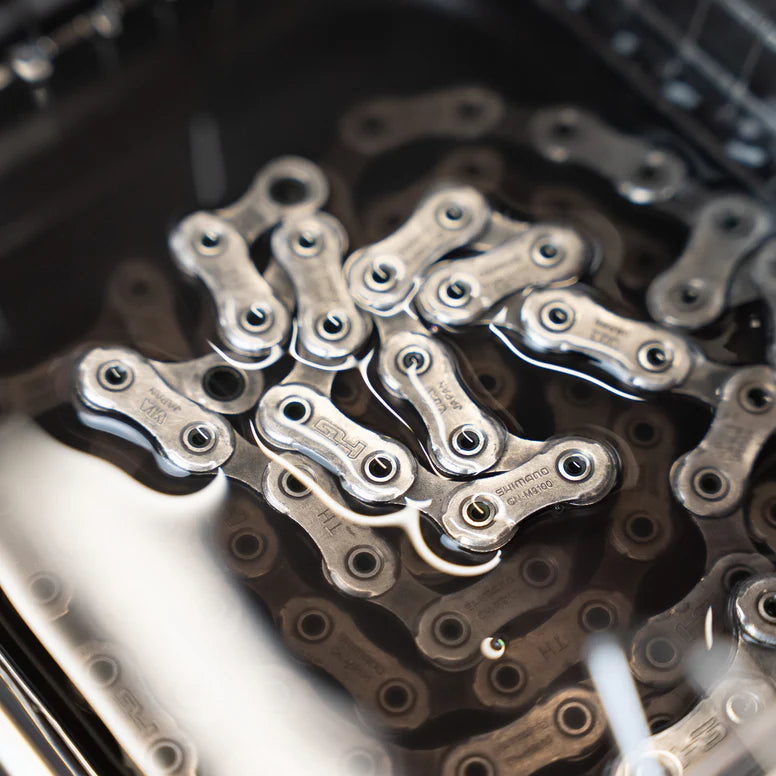 Idéal pour passer d’une lubrification à l’huile à la cire chaude, le Super Sonic prépare parfaitement la chaîne pour une adhérence optimale de la cire. Même les chaînes apparemment propres sont débarrassées de toutes traces cachées dans les axes et maillons.