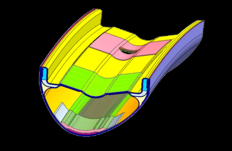 La tecnología ADAPTIVE LAYUP optimiza la distribución de las fibras de carbono para aligerar la llanta sin comprometer su resistencia. Se utiliza menos material en las zonas de menor tensión, mientras que los puntos clave se refuerzan. Este proceso reduce el peso hasta 70g por llanta, mejorando significativamente la aceleración y la eficiencia en las subidas.