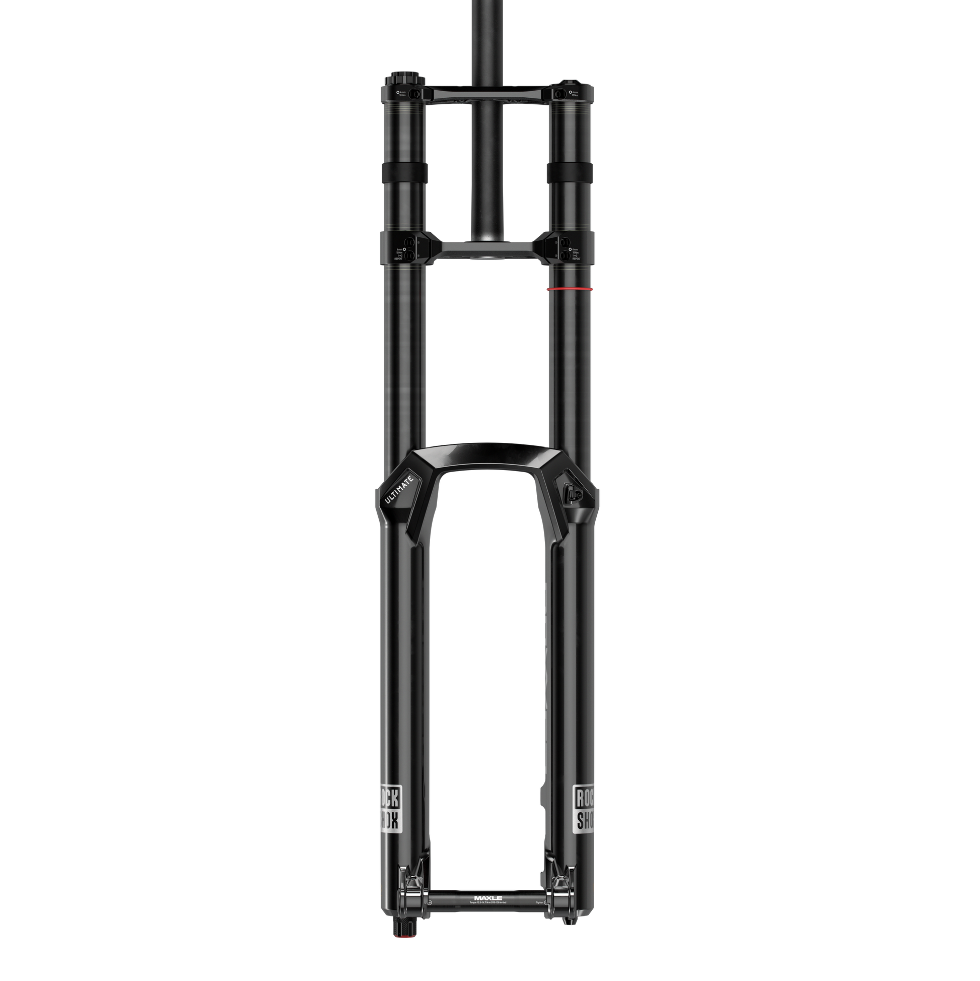 La fourche adopte une esthétique remaniée au design minimaliste, disponible en coloris Signature Electric Red et Ultimate High Gloss Black.