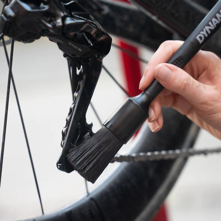 La Brosse Spéciale Transmission DYNAMIC Soft Detailing Brush permet un dégraissage en profondeur des chaînes et transmissions. Ses poils ultra-fins absorbent efficacement le dégraissant et pénètrent dans chaque maillon pour éliminer graisse, saleté et résidus, offrant un nettoyage complet sans gaspillage.