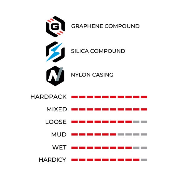 El Martello es un neumático versátil que se adapta a todas las condiciones. El perfil de los tacos proporciona un agarre perfecto sin comprometer la velocidad, para una conducción rápida y técnica. Todo esto se combina con el compuesto Graphene 2.0 para un agarre aún más fiable, y un comportamiento notable en superficies mojadas.